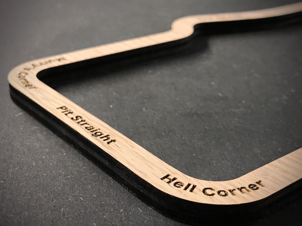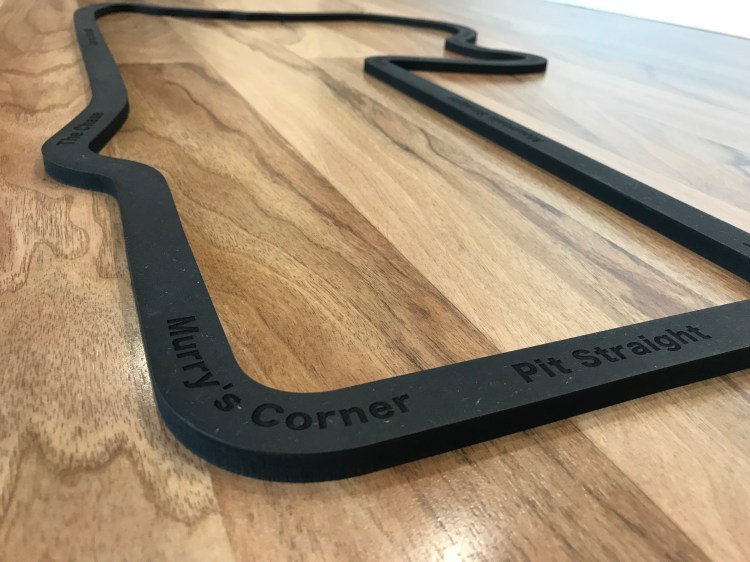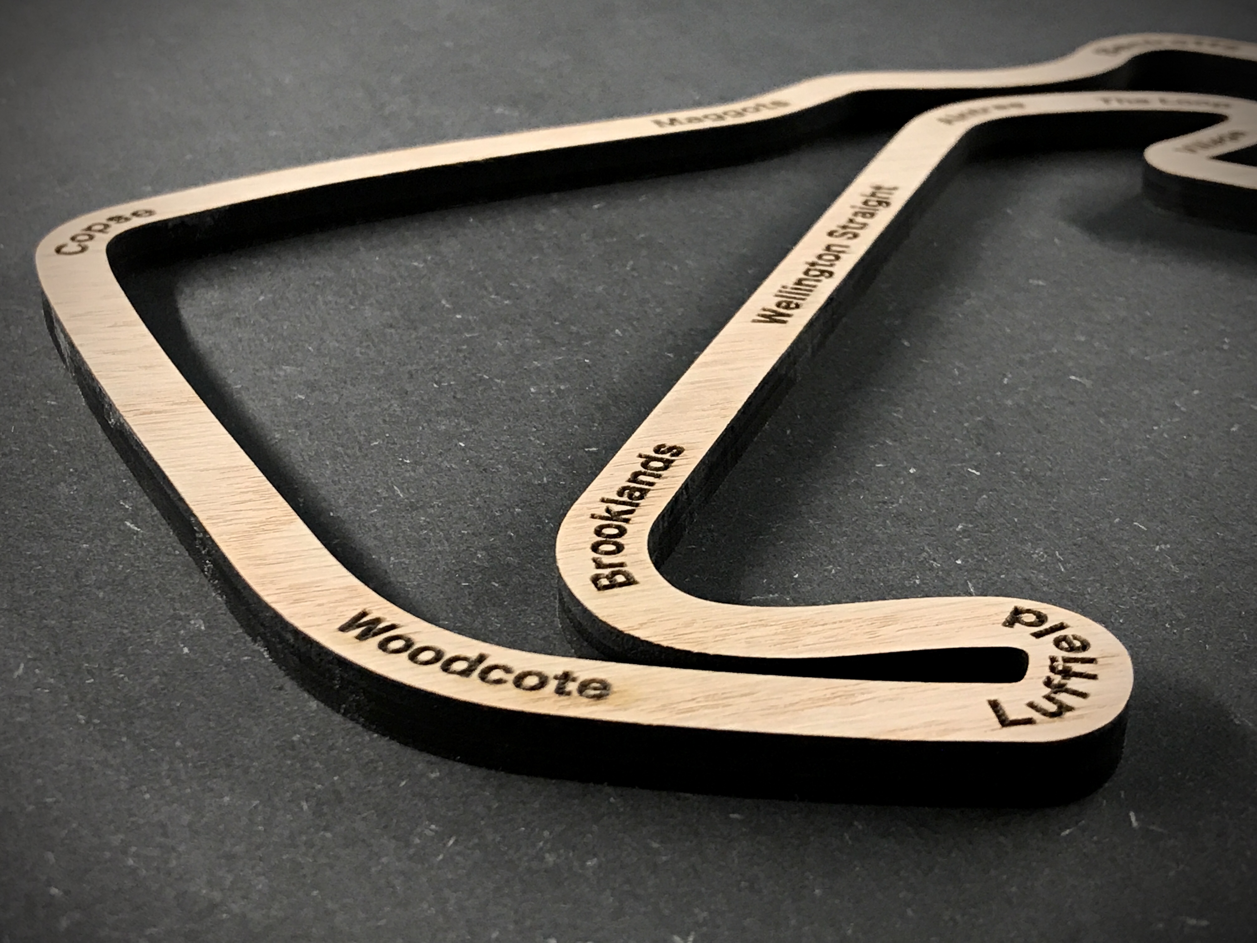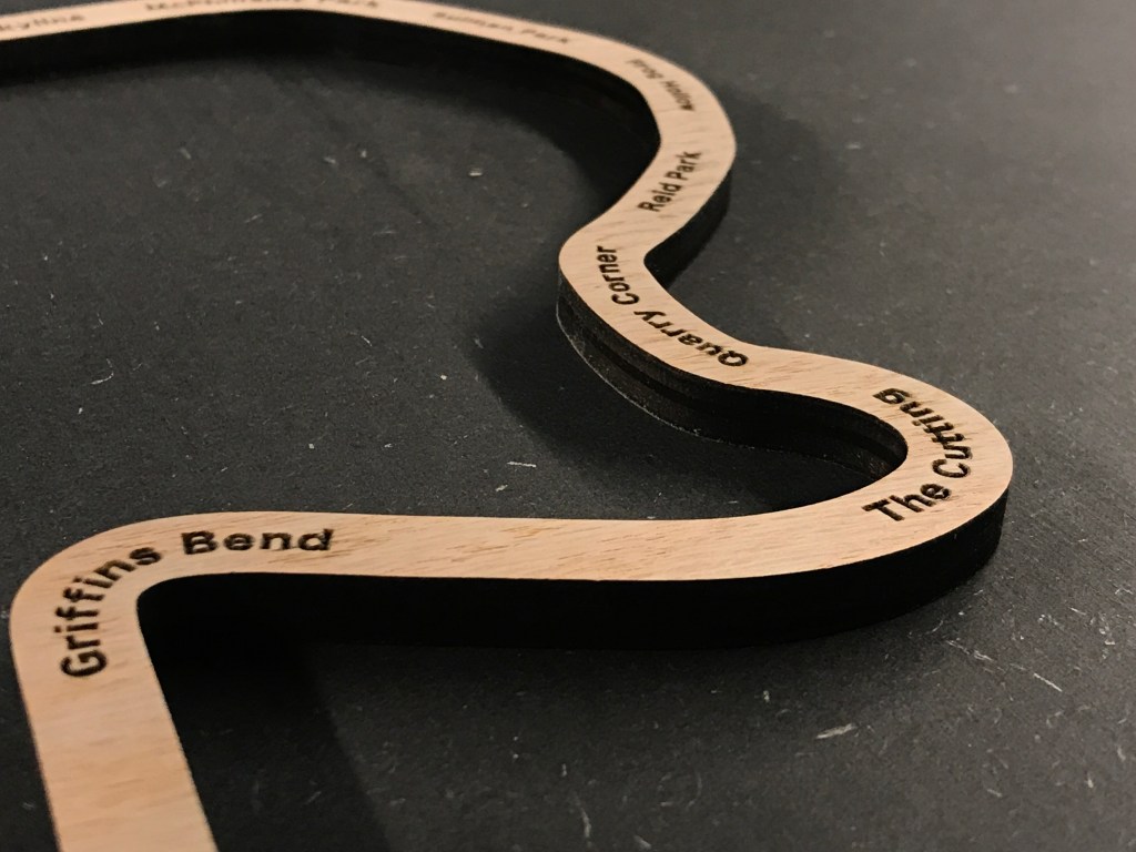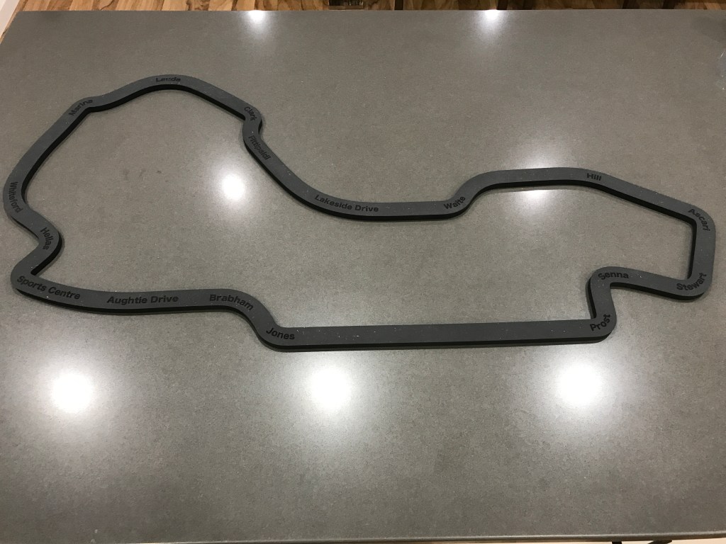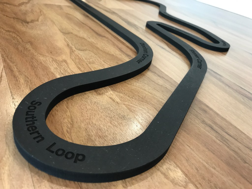 Laser cut race circuits in a range of sizes to decorate your wall or countertop